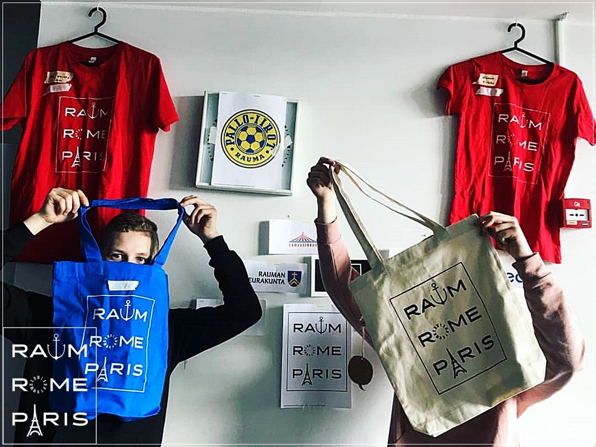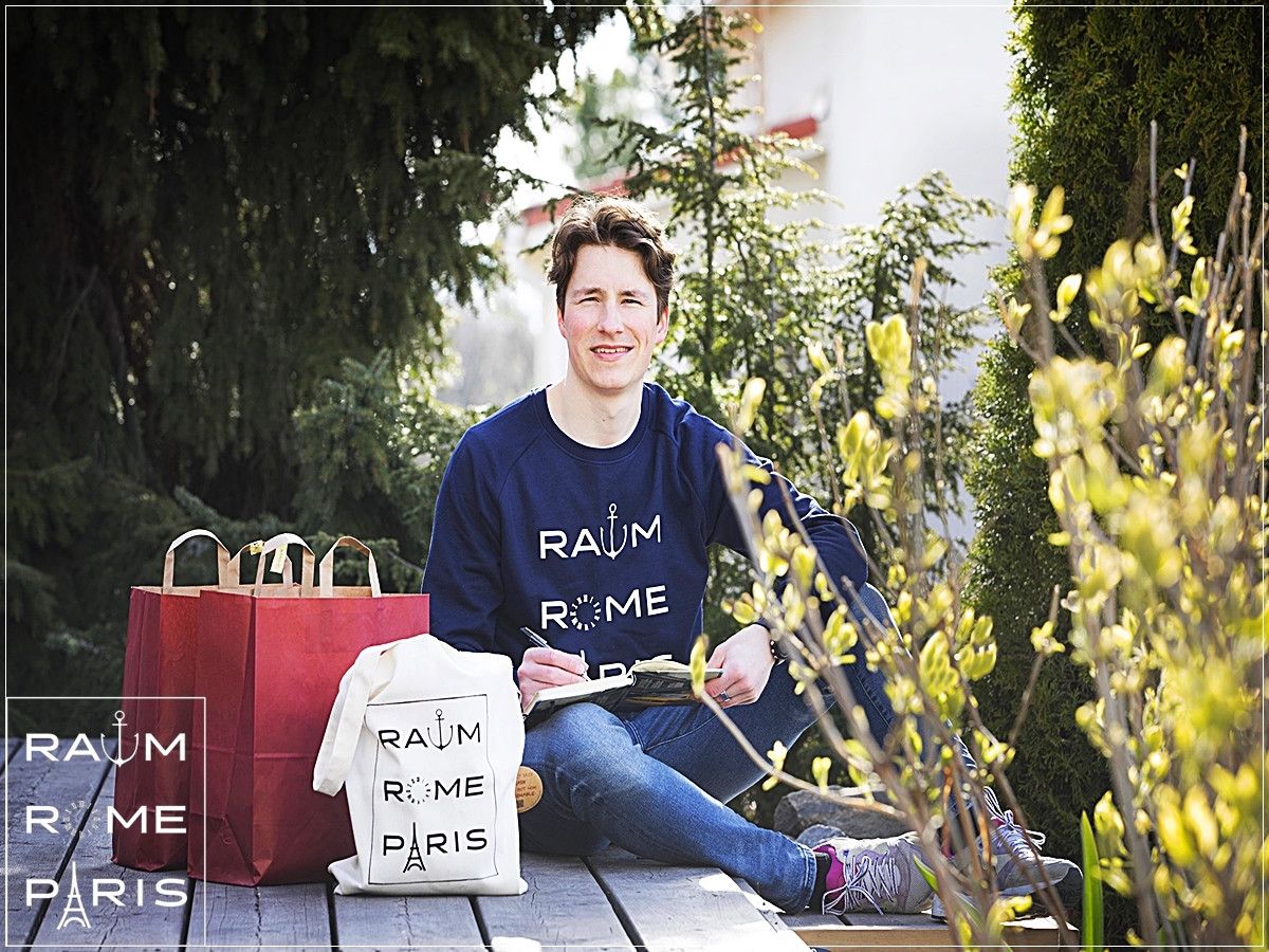 Vähitellen Raum Rome Paris- tuotevalikoima on laajentunut. Kaikki vaatteet ja kangaskassit painetaan Raumalla tai lähialueella. Alusta lähtien Raum Rome Paris -tuotteissa on otettu ekologisuus ja eettisyys huomioon. Kaikki paidat ja kassit valmistetaan reilun kaupankäynnin periaatteiden mukaisesti - 100% Fair wear!